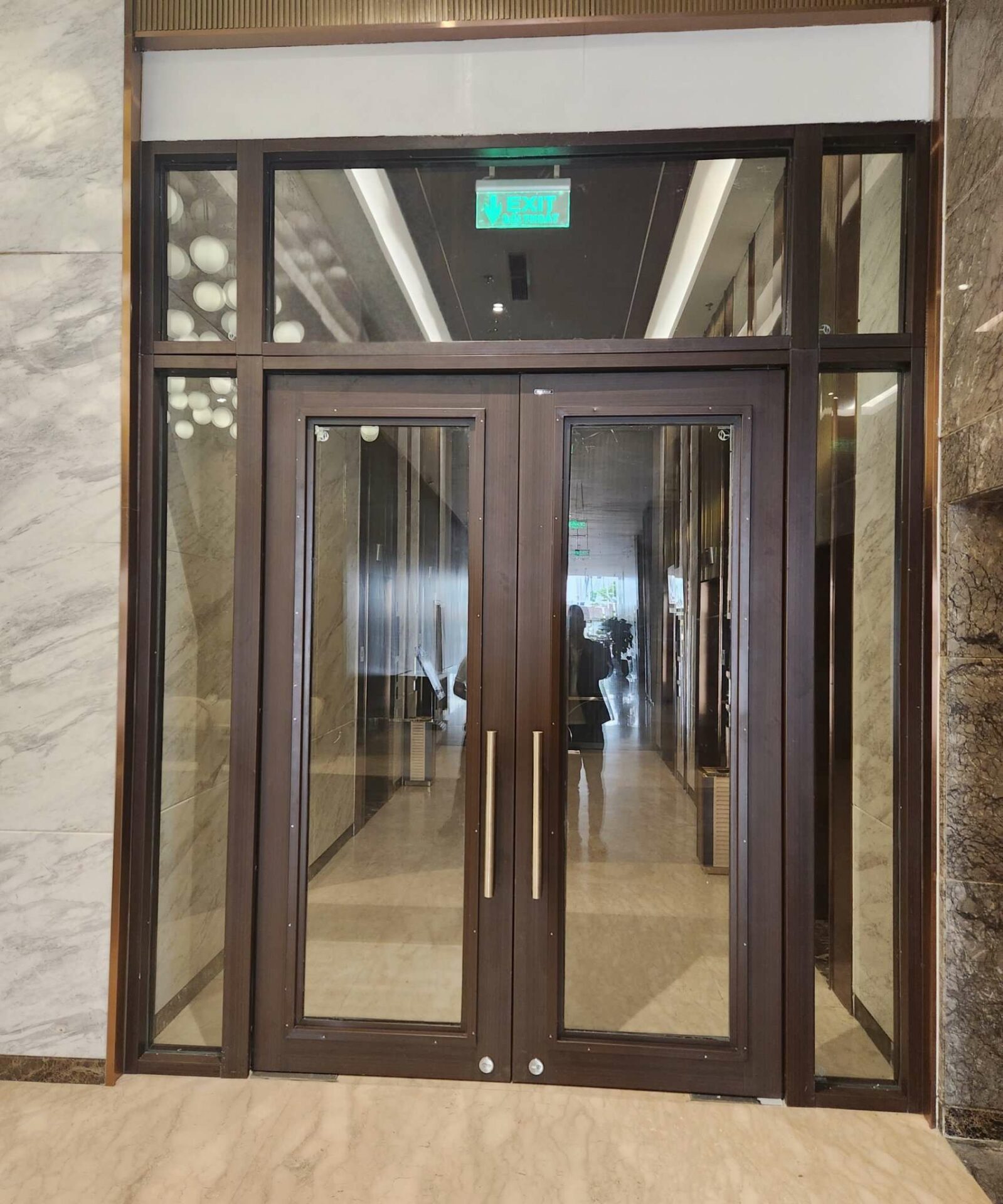 Luxury Windows tự hào là đơn vị đầu tiên đốt đạt, cung cấp ra thị trường sản phẩm cửa khung thép bọc nhôm kính chống cháy EI15, 30, 45, 60 ứng dụng cửa đi 2 cánh mở quay 1 chiều với fix cố định làm từ kính chịu lửa dùng trong nhà dày 12mm kết hợp khung nhôm lõi xử lý chống cháy.